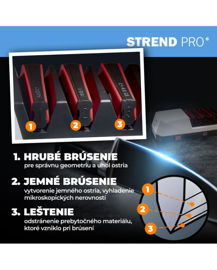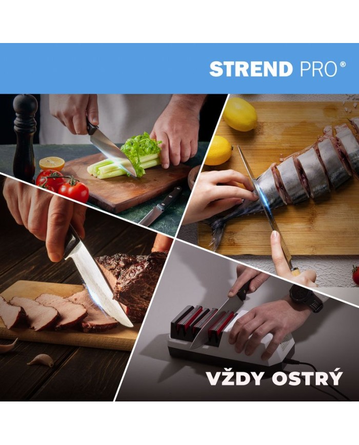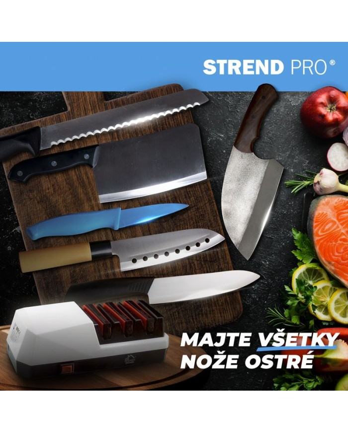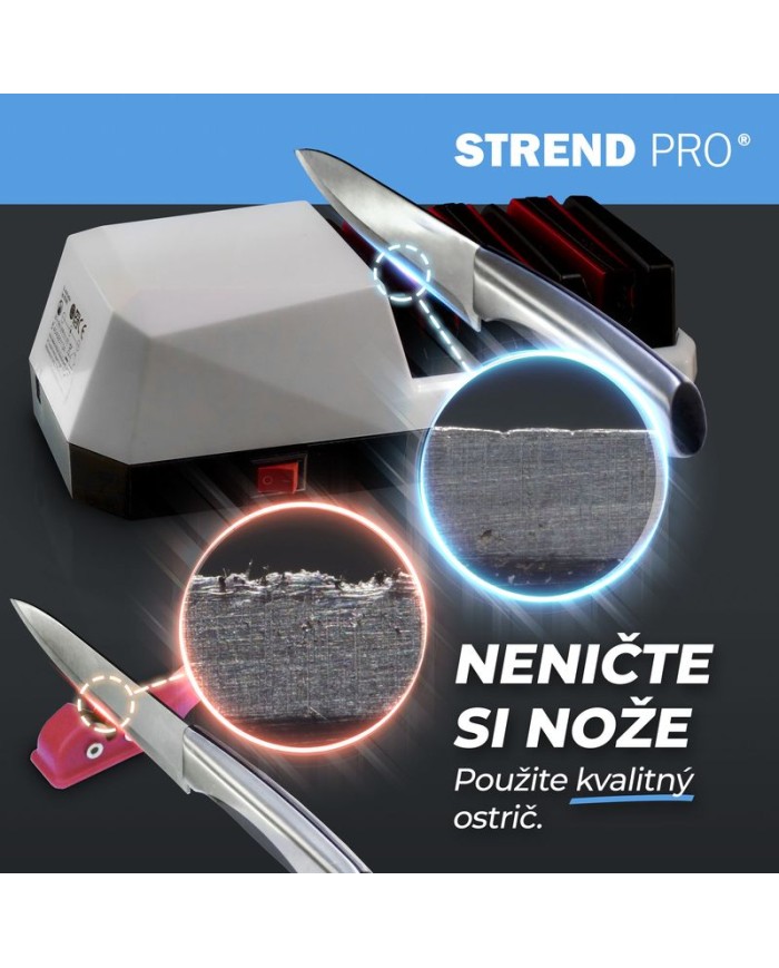 Elektrický ostrič nožov Strend Pro je skvelý spôsob ako udržať nože ostré. S ostričom ich nabrúsite rýchlo, ľahko a bez námahy. Poskytujetrojstupňový systém ostrenia čepelípre profesionálne výsledky v pohodlí domova.