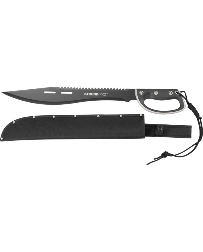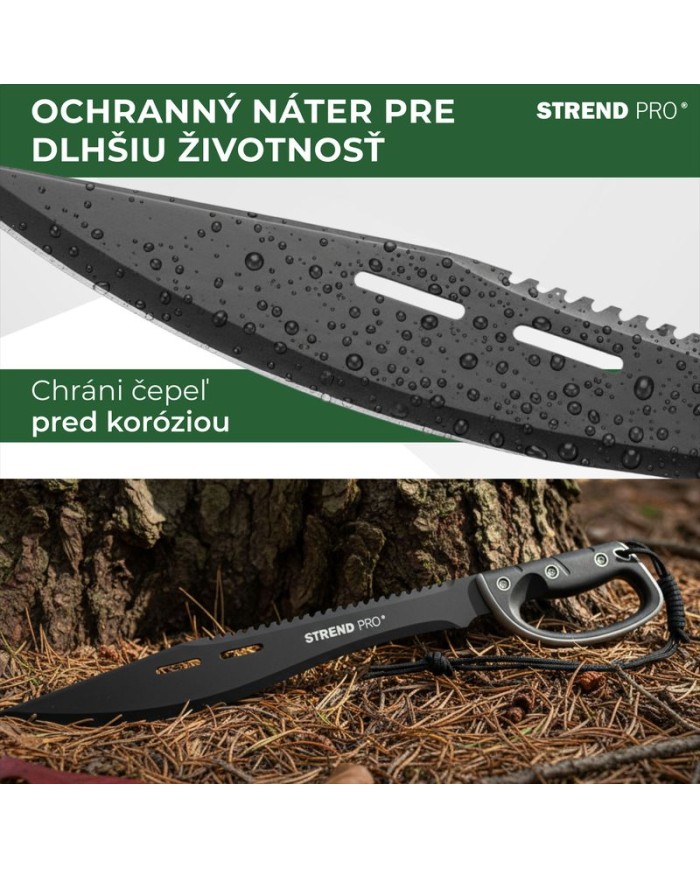 Mačeta Strend Pro Tactical, s puzdrom, s pílkou, s ochranou ruky, čierna, 61 cm