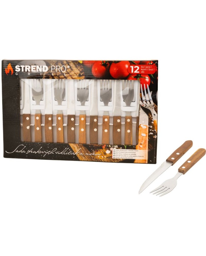 Príbor na steaky Strend Pro Grill, sada vidličiek a nožov, 12-dielna