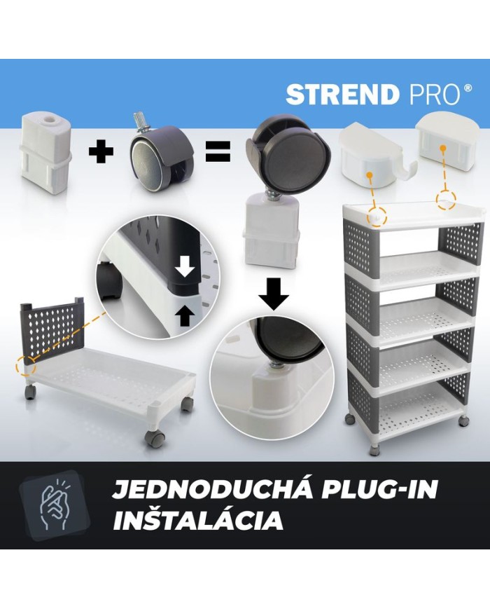 Regál MagicHome Rolly, plastový, 5 políc, 49x29x97 cm, na kolieskach
