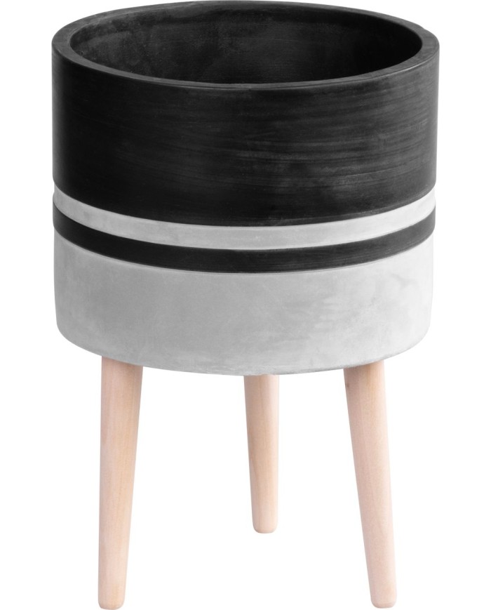 Tento keramický kvetináč vo farbe svetlej a tmavej sivej sa hodí do každého domu. Moderný dizajn na drevených nožkách. Je vhodný ako doplnok pre skrášlenie izieb, terás, záhrad alebo vchodu do domu. Rozmery kvetináča sú 22x22x31 cm.