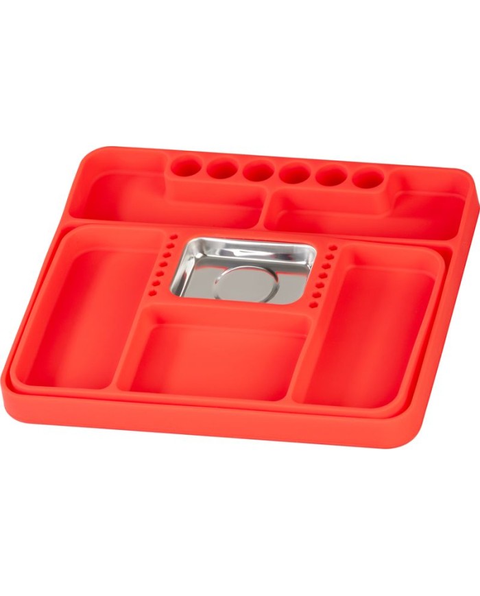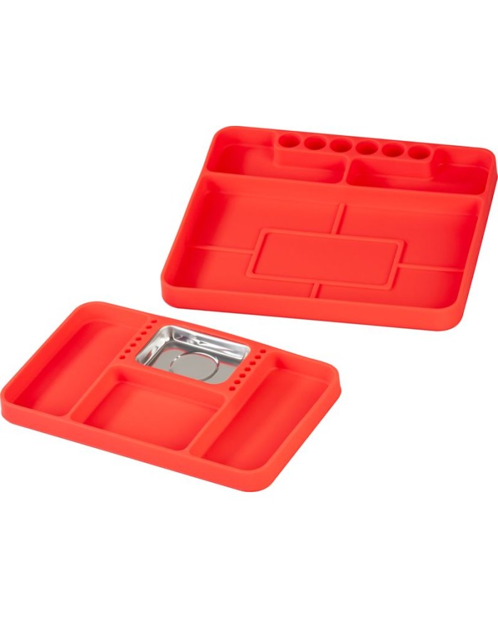 Magnetická miskaStrend Proje praktický organizér pre všetkých majstrov, mechanikov či kutilov. Je vyrobená z odolného silikónu a vybavenáneodymovým magnetom, ktorý pevne drží skrutky, matice, bity a drobné kovové súčiastky vždy po ruke.