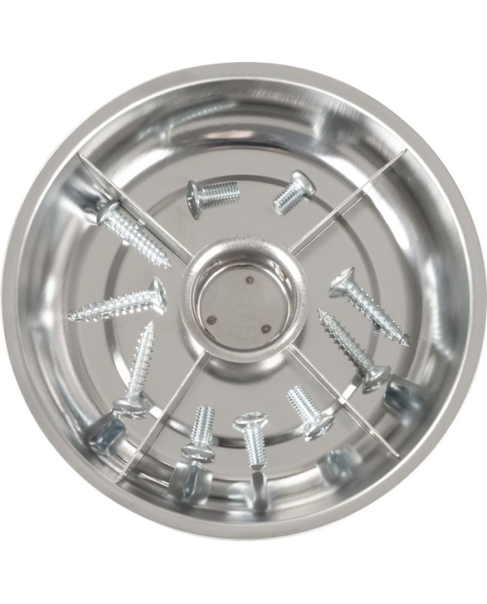 Magnetická miskaStrend Proje spoľahlivým pomocníkom v každej dielni, garáži či servise. Je vyrobená zkvalitnej nerezovej ocele (INOX)a vďaka silnému magnetu bezpečne drží skrutky, matice, bity či iné drobné kovové súčiastky priamo na mieste, kde ich potrebujete.