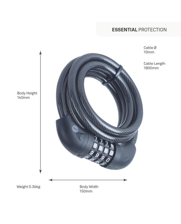 Lankový zámok na bicykel Yale na kód. Opletené oceľové lano. Odolnosť voči poveternostným vplyvom. Držiak zámku na bicykel - súčasťou balenia. Hrúbka oceľového lana: 10 mm. Dĺžka lana: 180 cm.