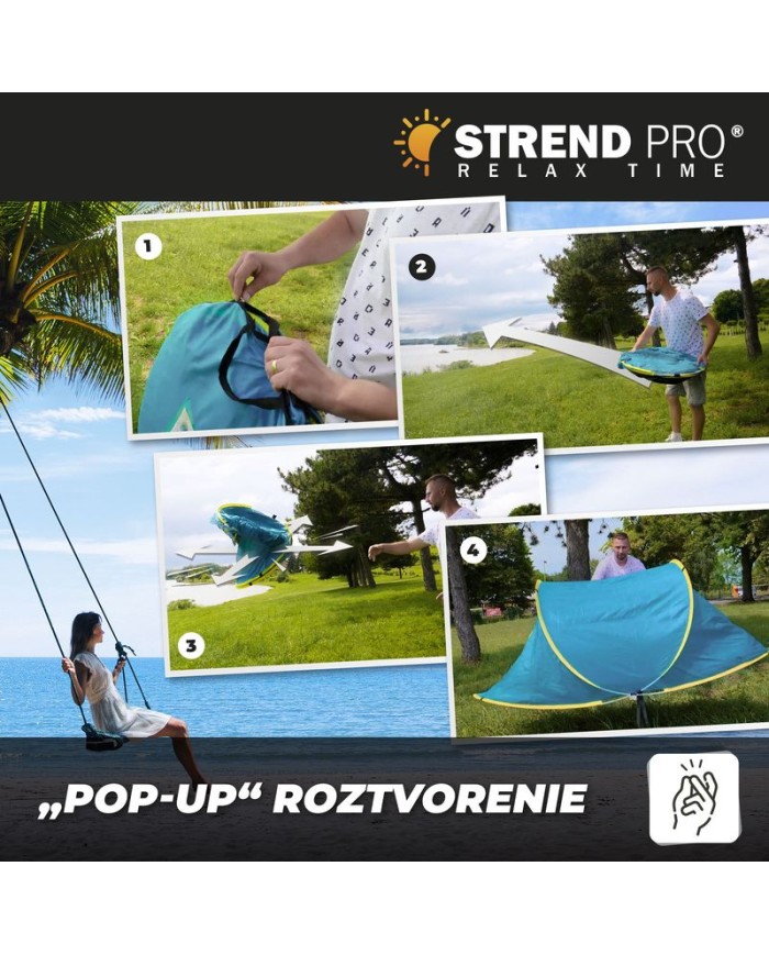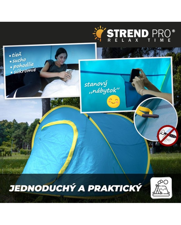 Stan Strend Pro, rozkladací, plážový, modro-žltý, 220x120x95 cm