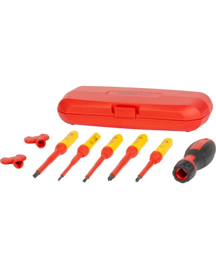 Sada skrutkovačovStrend Pro VDE, 8-dielnaje špeciálne navrhnutá pre elektrikárske práce. Obsahujeploché a Phillipsskrutkovače sizoláciou VDE, ktorá poskytuje bezpečnosť pri práci pod napätím až do1000 V.