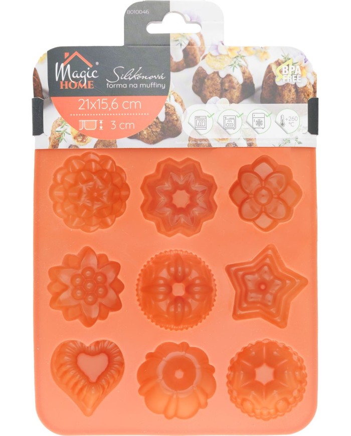 Forma na muffiny MagicHome je ideálnym pomocníkom pri pečení sladkých aj slaných dobrôt. Vyrobená z kvalitného silikónu, ktorý je BPA free, zabezpečuje bezpečné a zdravé používanie. Vďaka rôznym tvarom oživíte každé pečenie kreativitou.