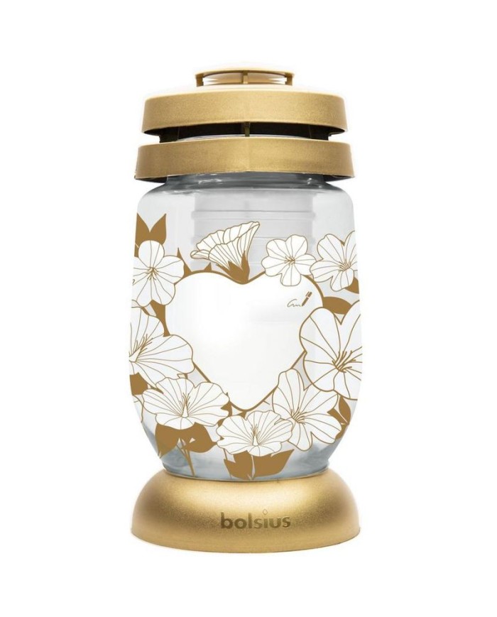 Kahanec Note from the Heart v odtieňoch zlatej so zlatými akcentmi. Vyrobené z kvalitného priehľadného skla, cez ktoré je krásne vidieť plameň. Vďaka veľkej základni je veľmi stabilný a vďaka špeciálnej štruktúre a "čiapke" je vložka vo vnútri dokonale chránená proti vetru a vode. Elegantný a moderný, vyzerá skvele ako hlavná dekorácia náhrobných kameňov. Do srdca môžete napísať odkaz pre Vašich blízkych.