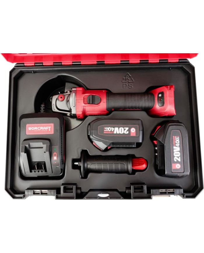 Set Worcraft XCUBE003 ShareSYS Toolbox, uhlová brúska CAG-S20LiBS 125 mm, 2x 4.0 Ah akumulátor, 1x nabíjačka