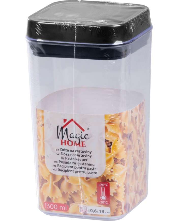 Kompaktná a praktická dóza MagicHome s objemom 1300 ml je ideálna na uskladnenie potravín. Vďakasilikónovému tesneniu zabezpečuje dokonalú čerstvosť obsahua je vhodná pre použitie v domácnosti aj na cestách.