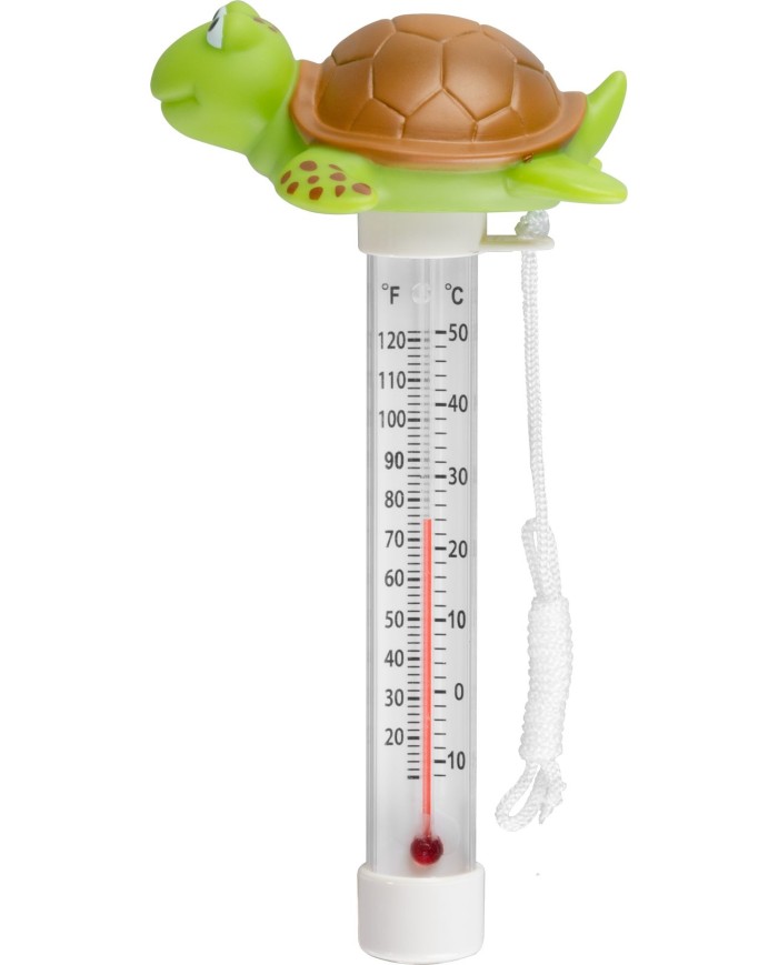 Plávajúci bazénový teplomerStrend Pro PoolKorytnačka je štýlovým a praktickým doplnkom na meranie teploty vody v bazéne, vírivke alebo jazierku. Jehohravý dizajns korytnačkou oživí váš bazén a zároveň poskytnepresné meranie teplotyv stupňoch Celzia aj Fahrenheita. Vďaka plávajúcej konštrukcii zostáva vždy na hladine prejednoduché odčítanie hodnôt. Teplomer je vyrobený zodolných materiálov, ktoré zabezpečujúdlhú životnosťaj pri vystavení chlóru a UV žiareniu. Ideálny doplnok pre každého, kto chce udržať optimálnu teplotu vody a spríjemniť si relax pri bazéne.
