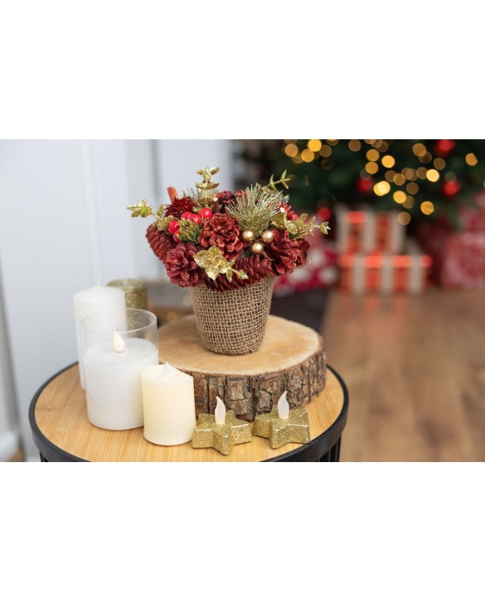 Ikebana MagicHome Vianoce, prírodná, červená, 17x17 cm