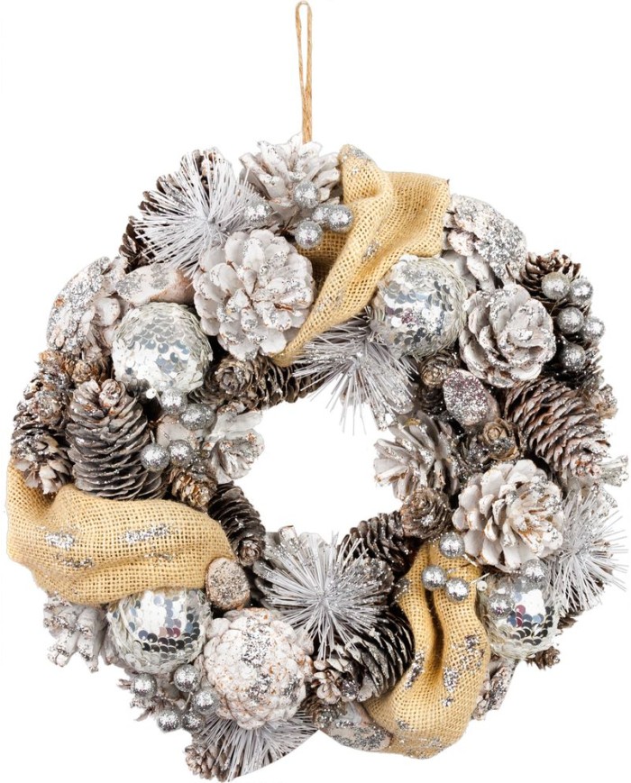 Veniec MagicHome Vianoce, prírodný, krémový, závesný, 33x9 cm