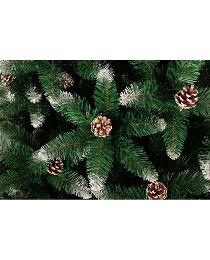 Vytvorte si kúzelnú vianočnú atmosféru s naším krásnym vianočným stromčekom. Tento 200 cm vysoký stromček z jedle má zasnežené konce a je ozdobený realistickými šiškami, ktoré mu pridávajú na prírodnom vzhľade. Ideálny na vytvorenie štýlovej a slávnostnej dekorácie vo vašej domácnosti. Vetvy stromčeka sú na kmeni pripevnené dáždnikovým rozkladacím systémom, takže po postavení stromčeka, každá vetva zapadne do svojho určeného miesta.