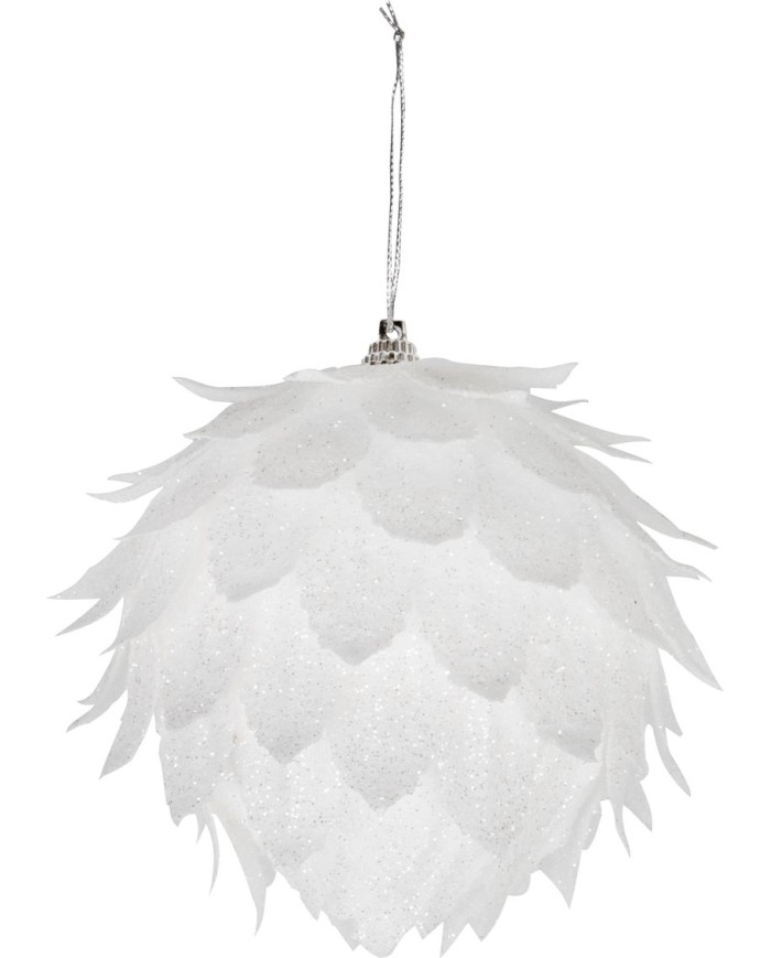 Dekorácia MagicHome Vianoce, Guľa, biela, s glitrami, 10 cm