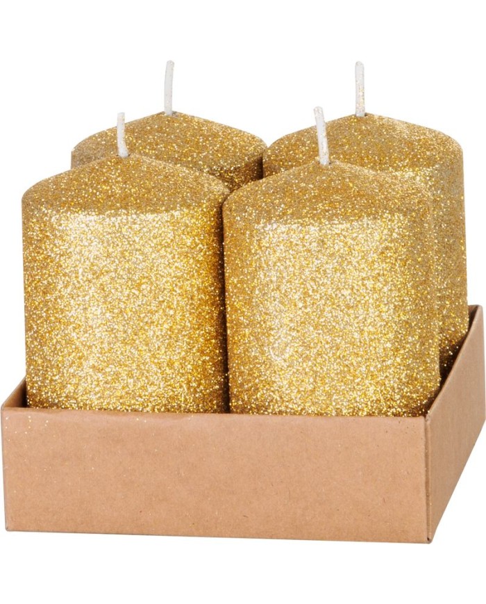 Sviečka MagicHome Vianoce, 4,8x8 cm, valcová, bal. 4 ks, zlatá, s glitrami, adventná