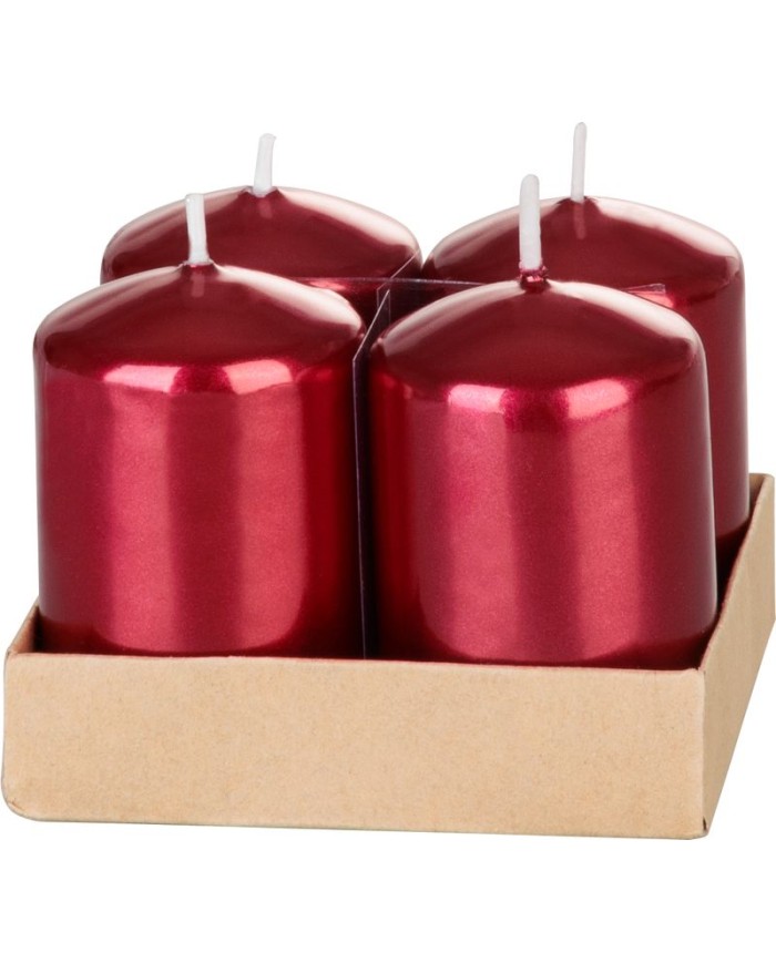 Sviečka MagicHome Vianoce, 4x6 cm, valcová, bal. 4 ks, červená, metalický efekt, adventná