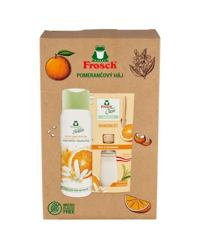 Darčekovou súpravou Frosch potešíte nielen svojich blízkych, ale aj prírodu. Produkty so zelenou žabičkou na obale sú priateľské k našej pokožke aj životnému prostrediu vďaka šetrnému a v prírode odbúrateľnému zloženiu, ekologickej výrobe i recyklovaným a opätovne recyklovateľným obalom. Výrobky sú vegánske.