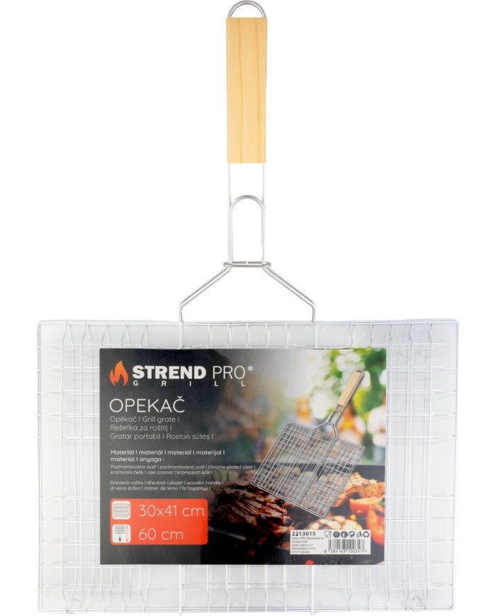 Opekač Strend Pro Grill s rozmermi 41 × 60 × 1,5 cm je ideálny na grilovanie mäsa, zeleniny alebo iných pokrmov nad uhlím či otvoreným ohňom. Vďakaveľkej plocheumožňuje prípravu viacerých porcií naraz, pričom hustá kovová mriežka zabraňuje prepadnutiu jedla do ohňa.