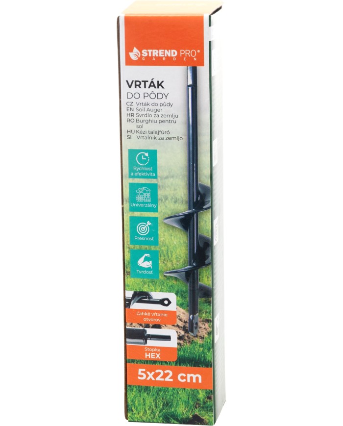 Vrták do pôdy STREND PROje ideálnym nástrojom na rýchle a presné vŕtanie do pôdy. Je určený na použitieso skrutkovačom alebo vŕtačkoua vďakaHEX stopkeposkytuje bezpečné a pevné uchytenie. Jeho špirálovitý dizajn umožňujejednoduché zavŕtanie do pôdys minimálnou námahou, pričomzabezpečuje rovnomernú hĺbku a priemer otvorov.