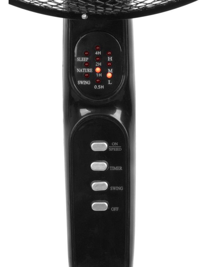 Ventilátor ponúka 3 rýchlosti prúdenia vzduchu, osciláciu v rozsahu 100° a nastaviteľný sklon hlavy až do 30°. Výšku možno teleskopicky prispôsobiť v rozmedzí od 100 do 125 cm. Pre ešte väčší komfort je vybavený časovačom na 0,5 / 1 / 2 / 4 hodiny a dvoma režimami – spánkovým a prirodzeným vánkom.