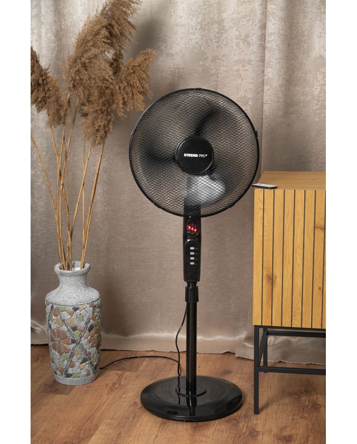 Stojanový ventilátor Strend Pro s diaľkovým ovládaním je praktický pomocník pre horúce dni, ideálny do domácnosti alebo kancelárie. Vyznačuje sa moderným dizajnom, tichým chodom a možnosťou voľby medzi 3 režimami ventilácie. Vďaka priemeru 40 cm zabezpečuje dostatočný prúd vzduchu, pričom jeho výkonný 45 W motor zaručuje spoľahlivú prevádzku.