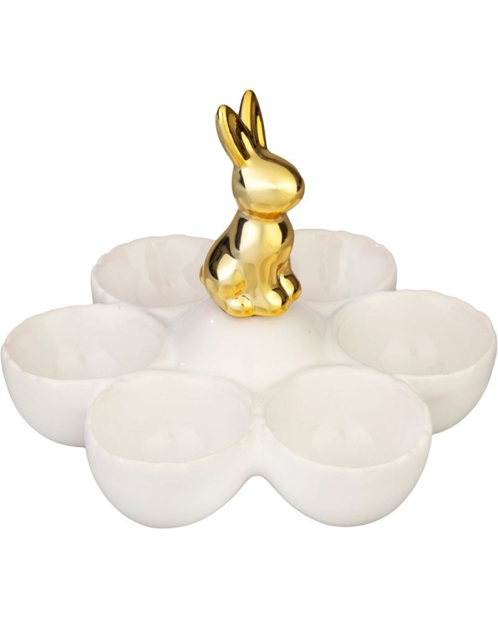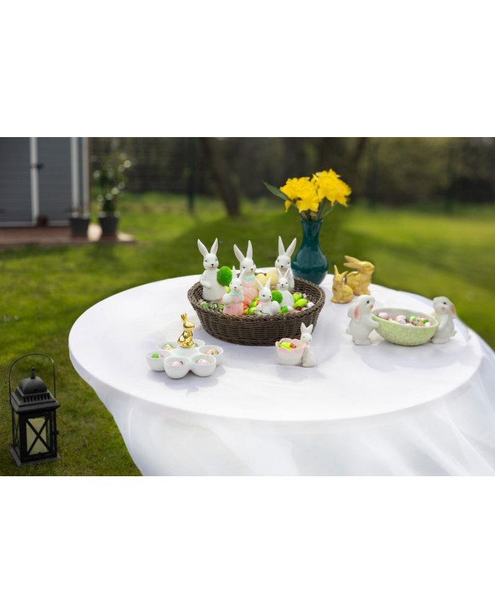 Dekorácia MagicHome, Zajačik s miskami na vajíčka, biela, keramika, 15x15x11,7 cm