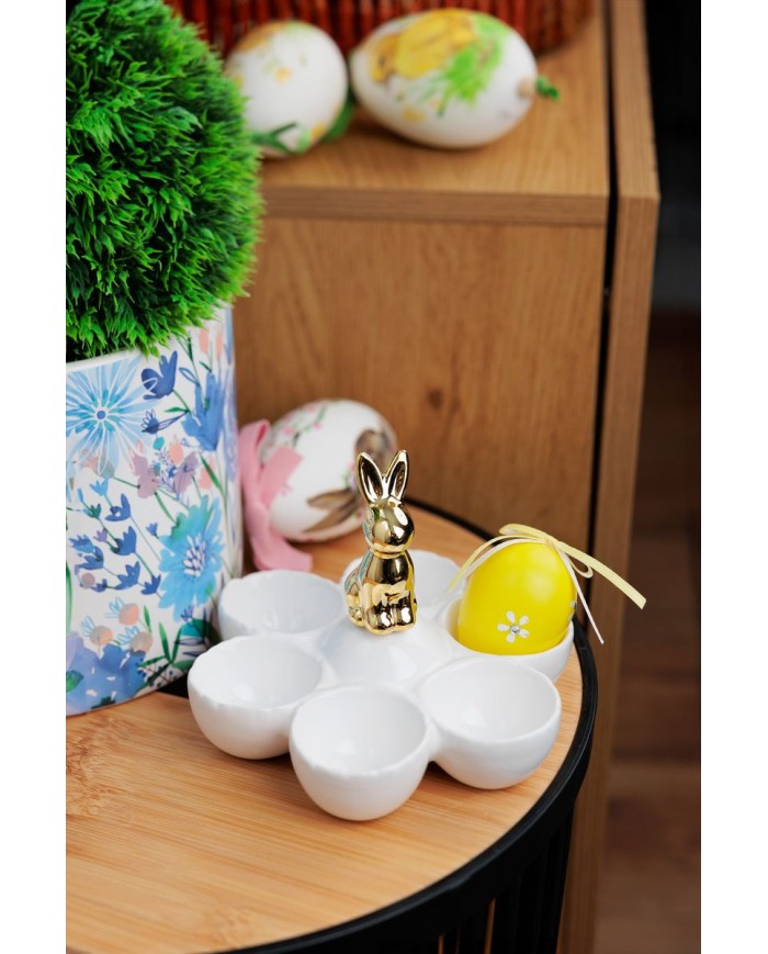 Táto keramická dekorácia MagicHome v podobe roztomilého zajačika s miskami na vajíčka je ideálnym doplnkom na veľkonočný stôl alebo jarnú výzdobu. V elegantnej bielej farbe a rozmeroch 15 × 15 × 11,7 cm pôsobí vkusne a harmonicky zapadne do každého interiéru. Misky poskytujú praktický priestor na uloženie veľkonočných vajíčok, sladkostí alebo drobných dekorácií. Vďaka kvalitnému keramickému spracovaniu je dekorácia odolná a štýlová, vhodná aj ako darček pre milovníkov sezónnych ozdôb.