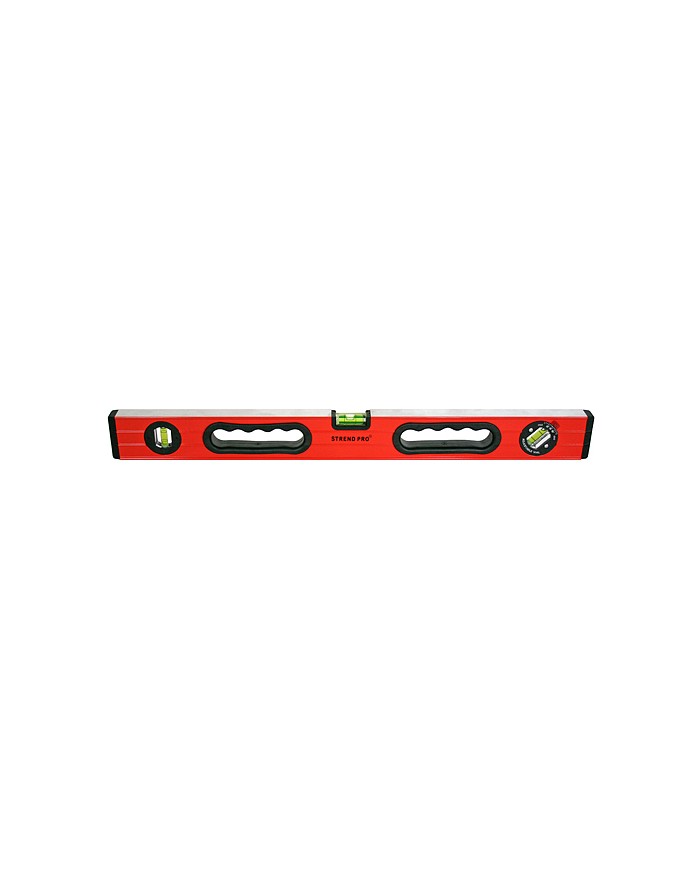 Vodováha Strend Pro LE-99R má protišmykové gumové hrany, jemné držiaky, vrúbkovanú hornú a dolnú hranu a nastaviteľnú libelu na meranie uhlov.