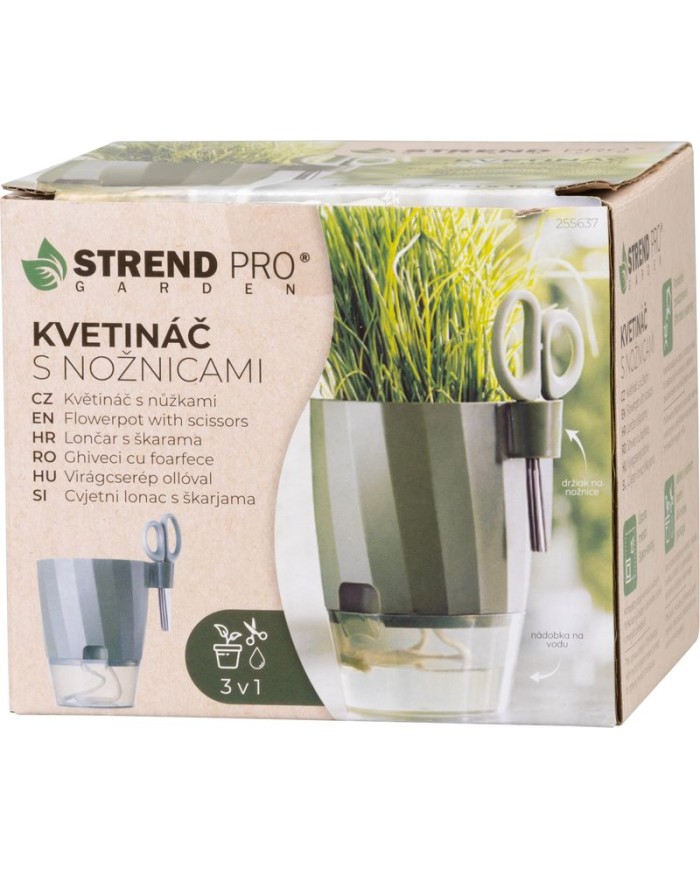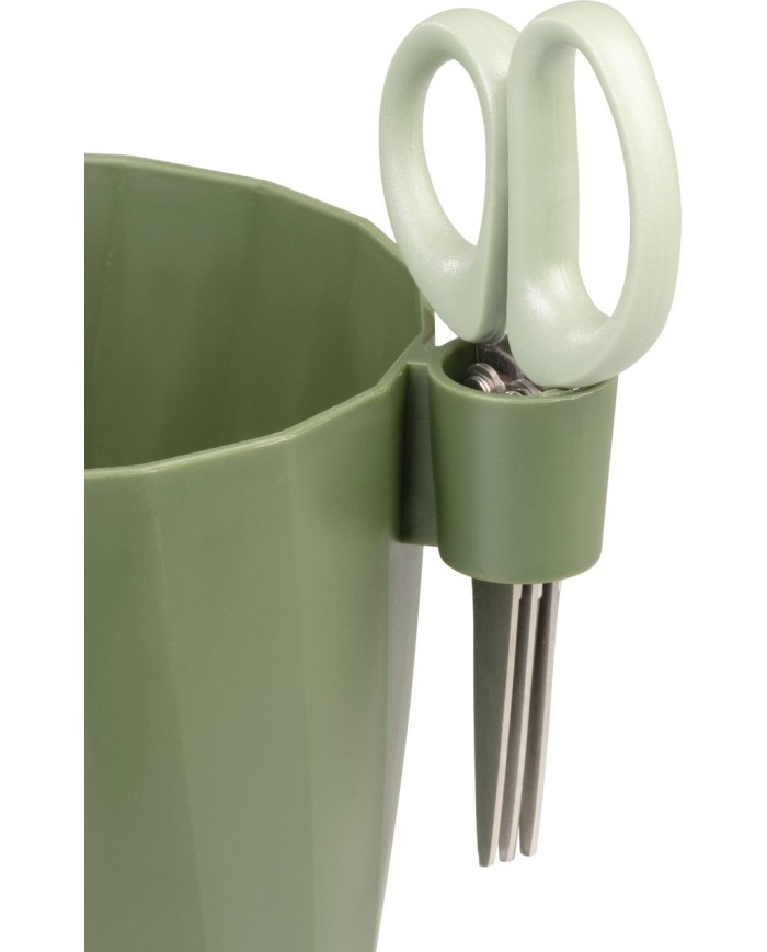 Kvetináč Strend Pro so záhradníckymi nožnicami vzelenej farbeje praktickým riešením pre každého pestovateľa byliniek a menších rastlín. Vďaka kompaktným rozmerom15,5 × 12,5 × 16 cmje ideálny na okenné parapety, kuchynské linky či balkóny.
