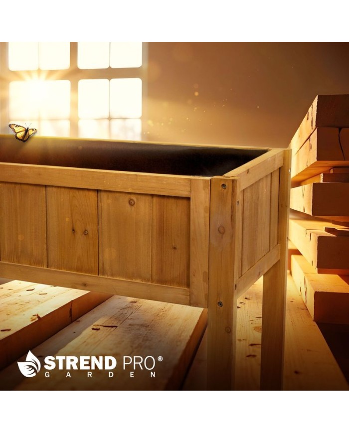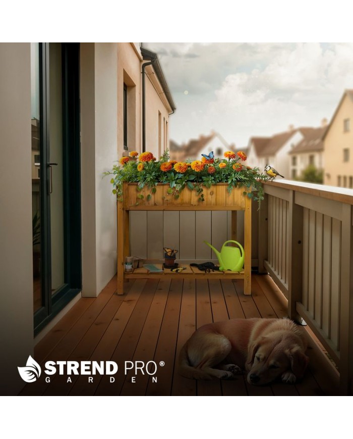Vyvýšený záhon Strend Pro Garden so spodnou policou je ideálnym riešením pre pestovanie byliniek, zeleniny alebo kvetov na terase, balkóne či v menšej záhrade. Jevyrobený z kvalitného dreva a vybavený pevnými nohami, ktoré umožňujú pohodlné záhradkárčeniebez zbytočného ohýbania. Spodná polica poskytuje praktický úložný priestor na náradie, zeminu alebo kvetináče. Záhon jestabilný, ľahko zostaviteľnýa vďaka svojmu prírodnému vzhľadu sa hodí do každého exteriéru. Rozmery záhonu sú 89 × 33 × 76 cm.