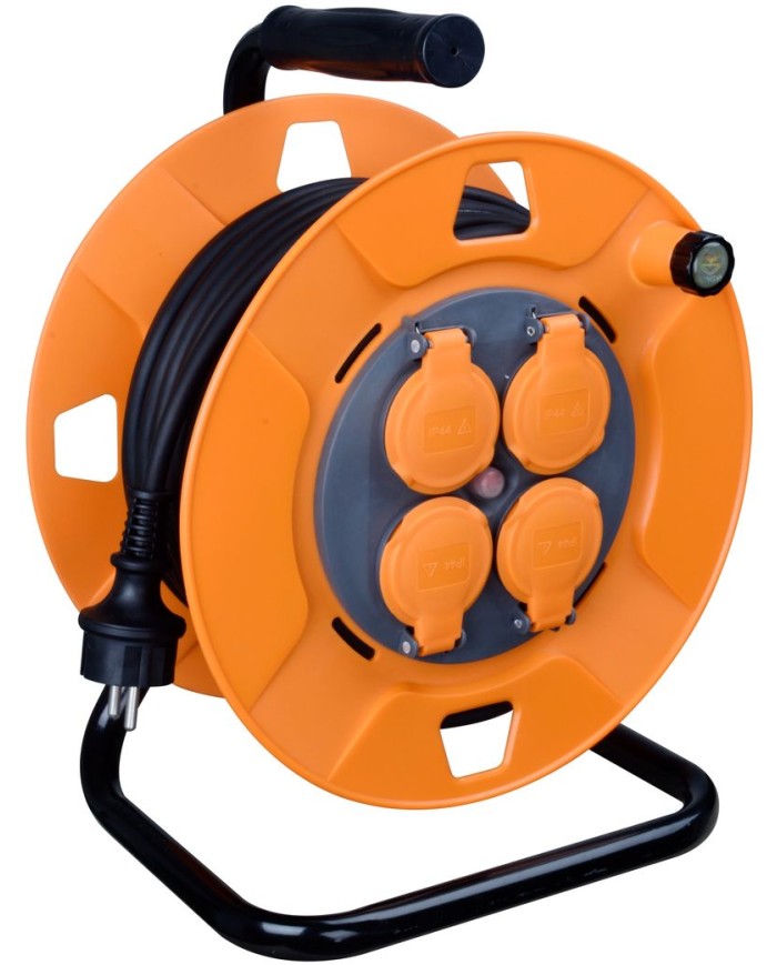 Kvalitný predlžovací kábel Strend Pro CR038 v oranžovom prevedení namotaný na bubne je dlhý 50 metrov. Efektívne rozšíri prívod elektriny do vzdialených miest. Na bubne má štyri zásuvky (230 V), takže môžete napájať viacero zariadení naraz. Svoje využitie nájde vo firmách aj záhradách.
