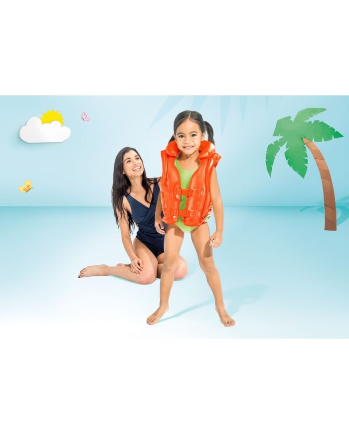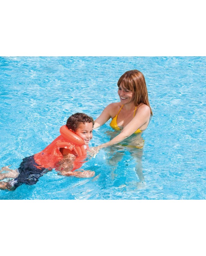 Detská nafukovacia vesta Intex® 58671EU Deluxe je ideálna plavecká pomôcka pre deti vo veku od 3 do 6 rokov. S rozmermi 50 × 47 cm poskytujebezpečnú oporupri prvých pokusoch o plávanie a zvyšuje istotu dieťaťa vo vode.