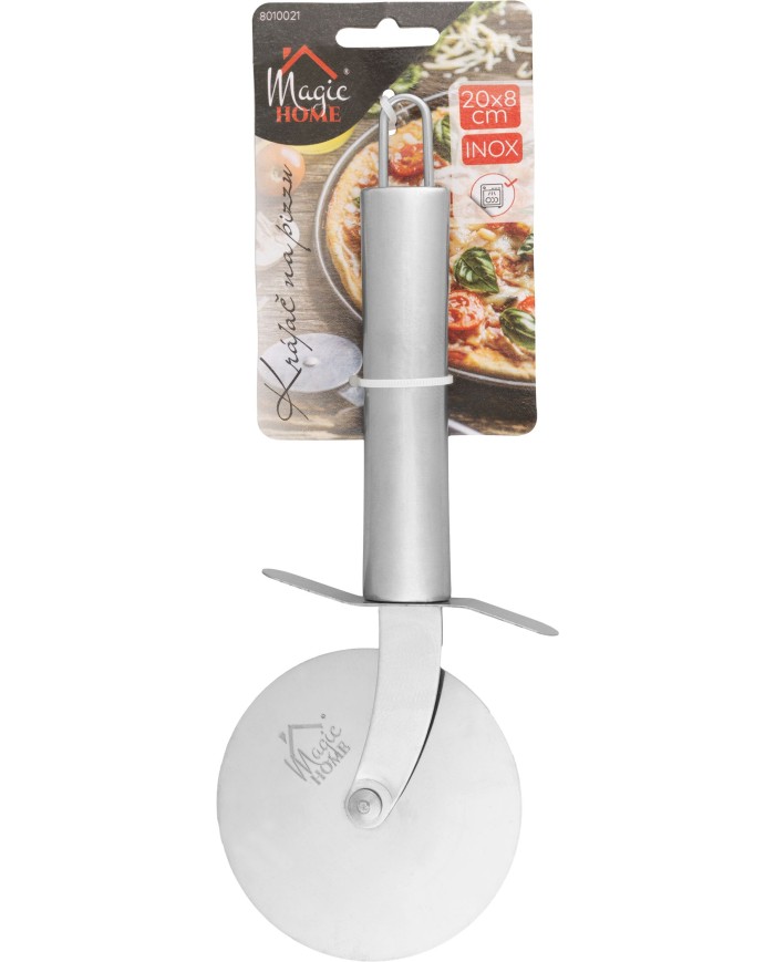 Perfektný pomocník pre každého milovníka pizze.Krájacie koliesko MagicHome s rozmermi 20 x 8 cm je vyrobené z kvalitnej nehrdzavejúcej ocele, vďaka čomu ľahko a presne nakrájate pizzu či slané koláče na dokonalé kúsky.