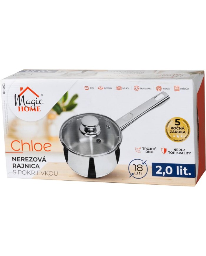 Rajnica MagicHome Chloe je ideálnym riešením pre každodenné varenie a prípravu jedál.S priemerom 18 cm a objemom 2 litreponúka spojenie špičkovej kvality, moderného dizajnu a praktického využitia.