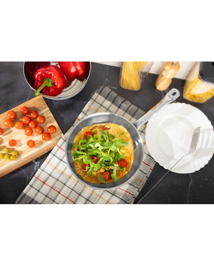 Rajnica MagicHome Chloe je skvelou voľbou pre každého, kto hľadá kvalitné kuchynské náčinie s moderným dizajnom.S priemerom 24 cm, objemom 2,5 litra a výškou nádoby 5,5 cmje ideálna na prípravu omáčok, polievok, prívarkov alebo menších porcií pokrmov. Táto rajnica kombinuje praktické funkcie s vysokou odolnosťou a estetickým vzhľadom.