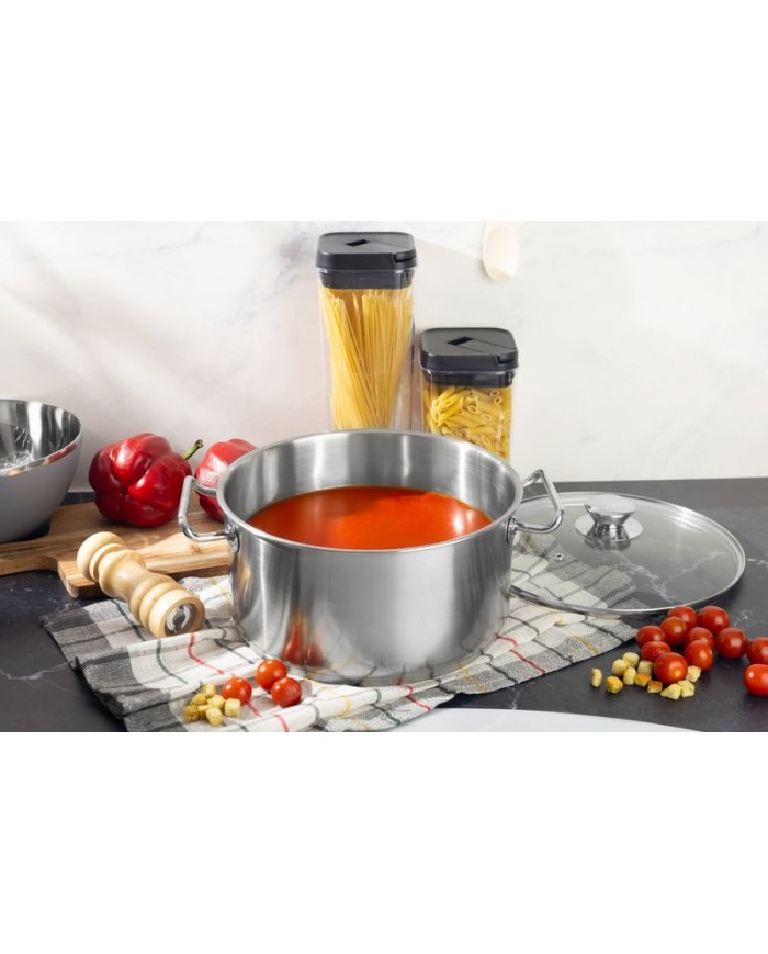 - Úprava Satin Finish: Povrch kastróla je menej náchylný na viditeľné škrabance a stopy po oderoch. Navyše znižuje výskyt odtlačkov prstov, čím udržiava nádobu dlhšie čistú a estetickú. Elegantný saténový povrch dodáva výrobku moderný a nadčasový vzhľad.