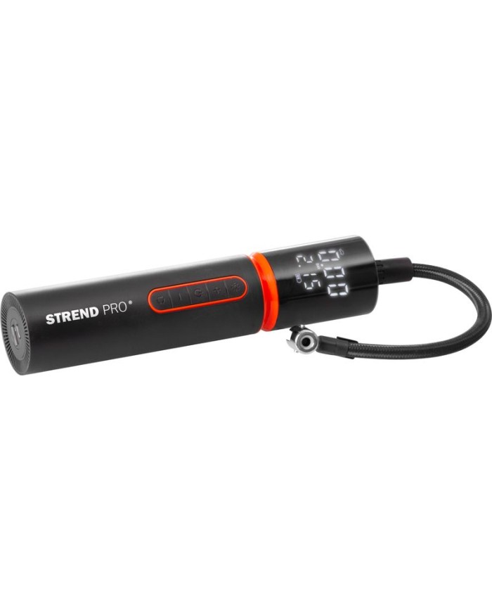 Kompresor STREND PRO 5v1 je kompaktné a praktické zariadenie určené na rýchle a efektívne nafukovanie pneumatík, loptičiek, nafukovacích matracov a iných predmetov. S maximálnym tlakom 150 PSI a prietokom vzduchu 22 l/min dokáže rýchlo napumpovať rôzne typy pneumatík a ďalších nafukovacích produktov. Vďaka integrovanej batérii s kapacitou 2000 mAh je kompresor plne prenosný a nevyžaduje neustále pripojenie k elektrickej sieti. Napájanie pri 3,7 V zabezpečuje dostatočný výkon na bežné nafukovanie, pričom kompaktný dizajn a jednoduché ovládanie umožňujú pohodlné používanie kdekoľvek.