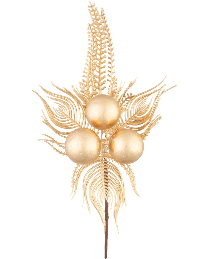 Dodajte svojmu vianočnému stromčeku alebo sviatočnej výzdobe dotyk elegancie s vetvičkou MagicHome Vianoce. Zlaté pávie pierka v kombinácii s dekoratívnymi guľôčkami pôsobia luxusne a dokonale doplnia tradičné i moderné aranžmány.