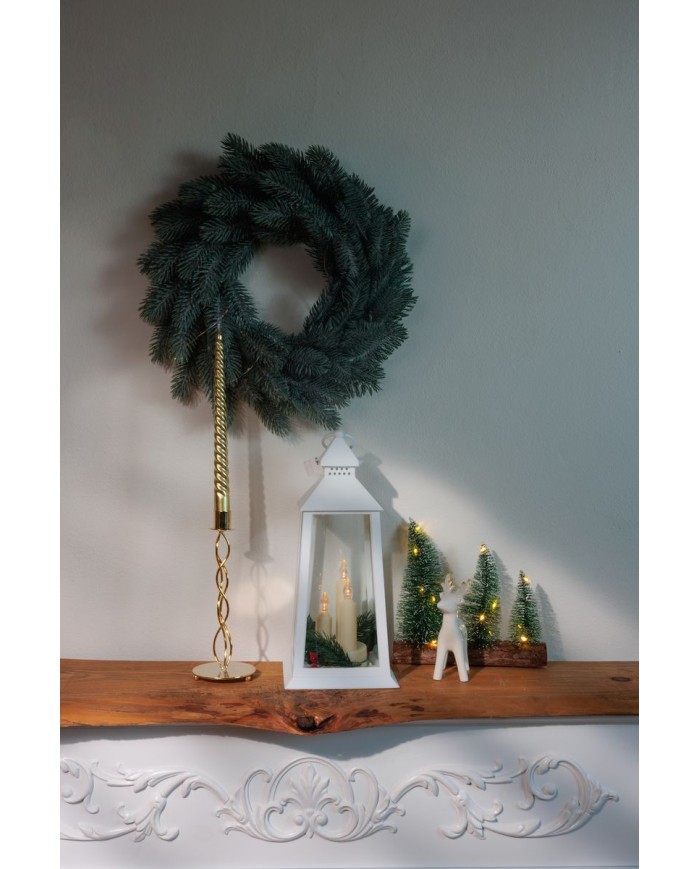 Vianočný lampáš MagicHome v elegantnom bielom prevedení s imitáciou sviečok je krásnym doplnkom, ktorý navodí príjemnú atmosféru sviatkov. Vďaka 3 žltým LED svetlám vytvára efekt jemného, teplého svetla, ktoré pôsobí ako skutočné plamienky sviečok.