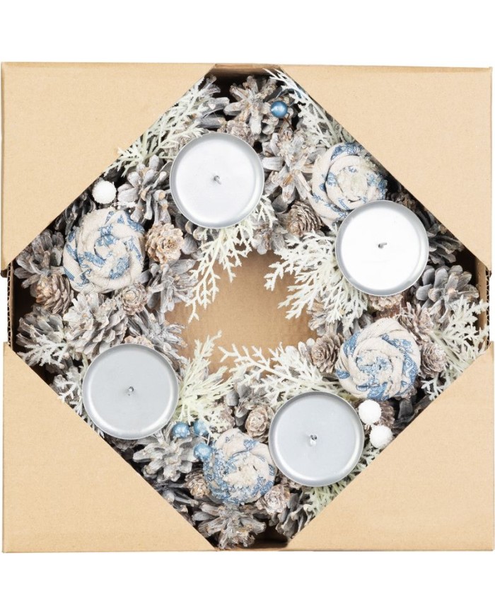 Adventný veniec MagicHome Vianoce v jemnej modro-bielej farbe je dokonalým doplnkom pre vaše sviatočné dekorácie. Veniec zdobia šišky, kvety a drobné ozdoby v kombinácii s prírodnými materiálmi, ktoré vytvárajú elegantný a svieži vzhľad.