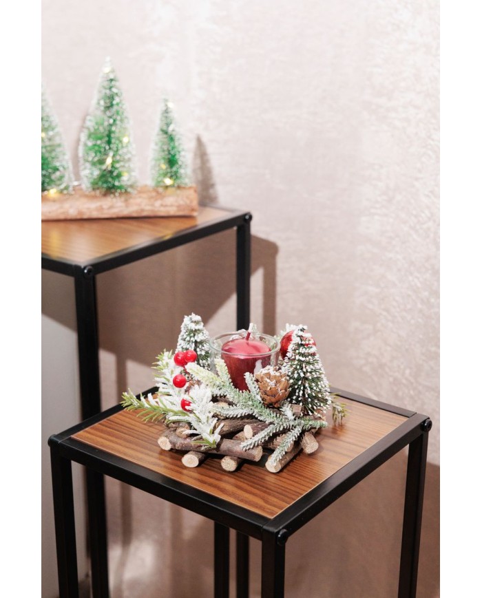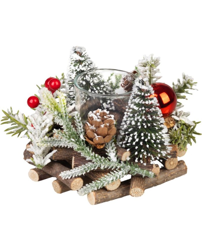 Vytvorte vo svojom domove kúzelnú vianočnú atmosféru s prírodným svietnikom MagicHome. Dekorácia je vyrobená z prírodných materiálov a zdobená drobnými vianočnými stromčekmi, šiškami, červenými bobuľkami a snehovým efektom, ktoré dokonale navodia zimnú pohodu.