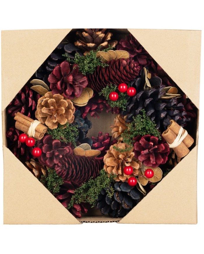 Dizajnový vianočný veniec MagicHome prinesie do vášho domova nádych elegancie a sviatočnej atmosféry. Veniec je zdobený prírodnými šiškami, dekoratívnymi kvetmi a ozdobnými guľôčkami v modro-červených tónoch, ktoré vytvárajú moderný a pritom teplý vzhľad.