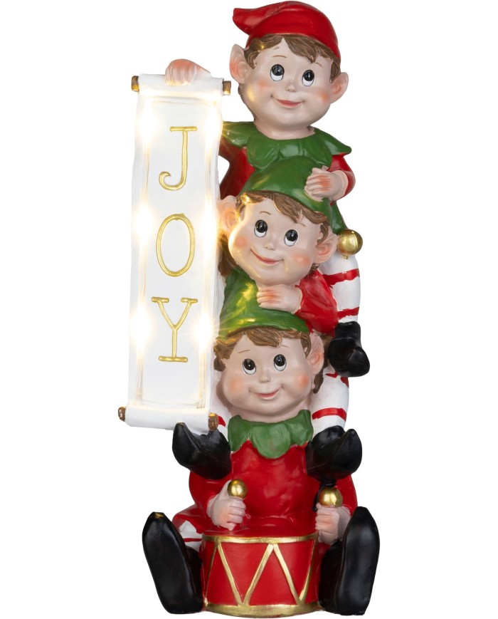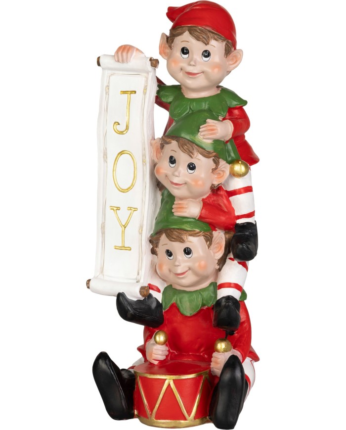 Dekorácia je ideálnym doplnkom na poličku, komodu či do obývacej izby. Škriatkovia symbolizujú hravosť a veselú náladu, ktorú prinesú aj do vášho domova počas vianočných sviatkov.