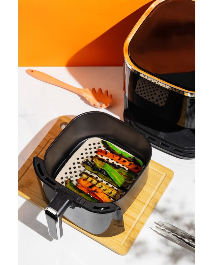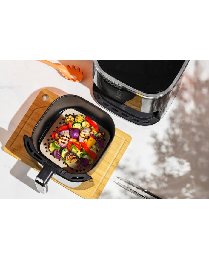 - Tvar a rozmery: Štvorcový tvar s rozmermi 18,7x18,7x0,1 cm je navrhnutý tak, aby perfektne pasoval do väčšiny štandardných fritéz.