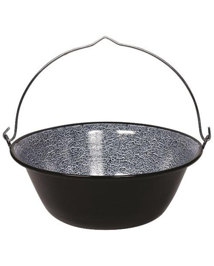 Kovový kotlík 25 lit, smaltovaný na guľáš s pozinkovaným kovovým držadlom. Vhodný na prípravu jedla pri táborení v prírode, pri vode alebo v domácnosti.