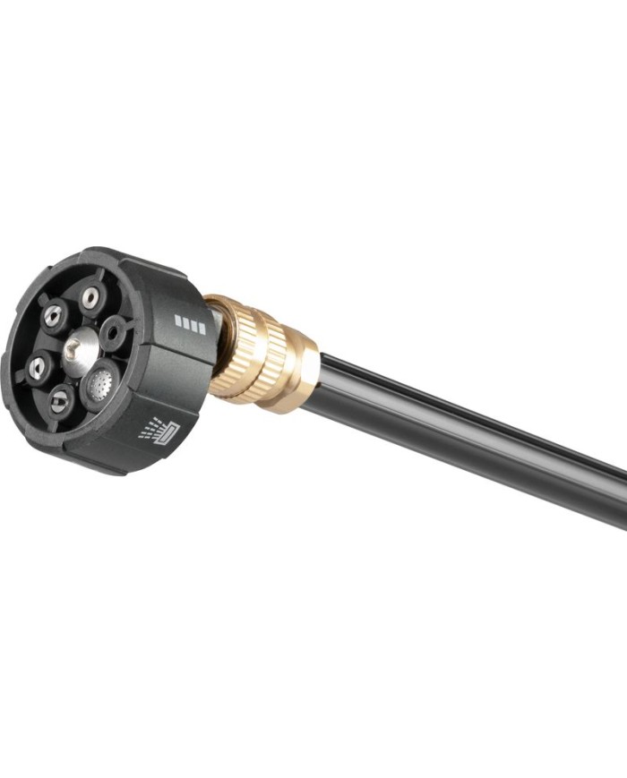 Pištoľ je vybavená piatimi postrekovacími režimami (0°, 15°, 25°, 40° a jemný lúč na čistiaci prostriedok), ktoré umožňujú presné cielenie a flexibilitu pri čistení. Nádobka na čistiaci prostriedok s objemom 380 ml je ideálna na aplikáciu saponátu priamo pri práci. Výhodou je aj možnosť nastavenia koncentrácie čistiaceho prostriedku. Hadica s dĺžkou 5 m poskytuje dostatočný pracovný dosah.