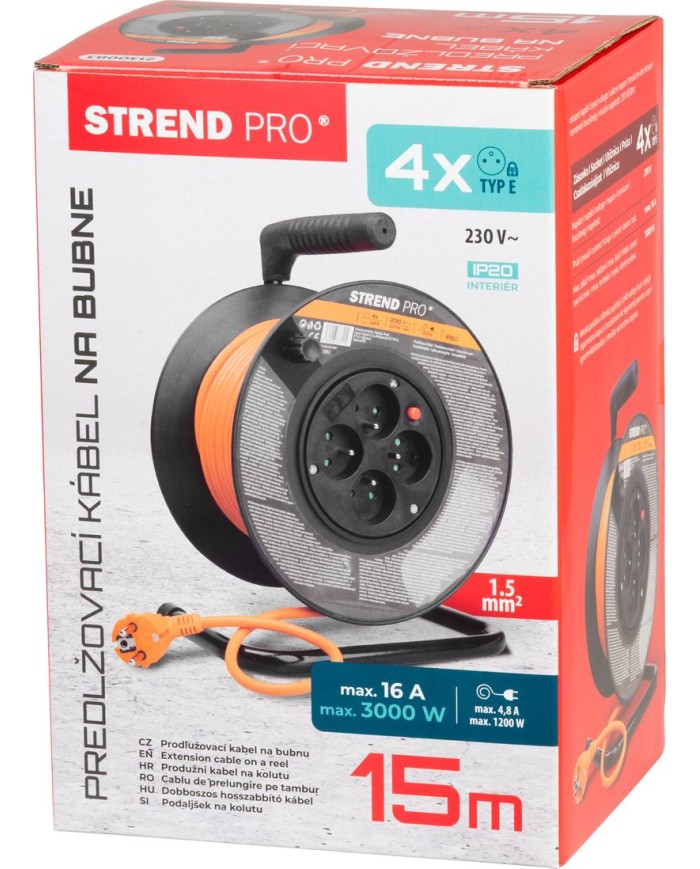 Kábel Strend Pro DG-FB04 predlžovací, L-15 m, na bubne, prierez 1,5 mm2