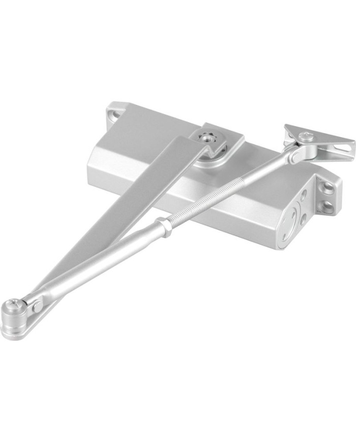Zatvárač dverí Strend Pro s hydraulickým tlmením je ideálny pre použitie v interiéri aj exteriéri na dvere s hmotnosťou od 40 do 65 kg. Spĺňa bezpečnostnú normu EN3 a je vybavený protipožiarnou odolnosťou, čo z neho robí spoľahlivé riešenie pre domácnosti, komerčné priestory aj technické objekty.
