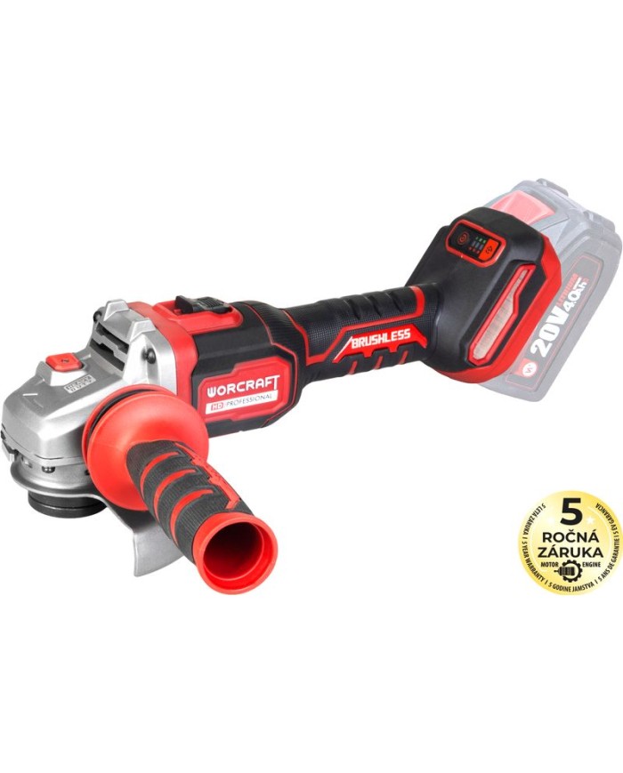 Brúska Worcraft CAG-S20LiBM 125 mm – akumulátorová uhlová (ShareSYS, 20 V Li-ion, bezuhlíková, 6-rýchlostná)